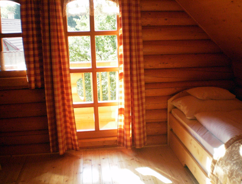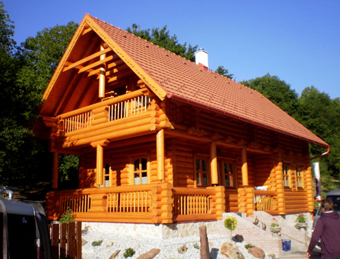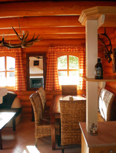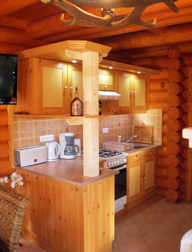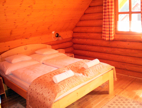 Kétszintes, erdélyi fenyőből készült rönkházunkban 10 fő elhelyezésére van lehetőség. A földszinten lévő nappali helyiség magában foglalja az étkezőt, a nappali sarkot és a főzőfülkét, valamint az egész ház fűtését ellátó kandallókályhát. A földszinten található még egy hálószoba 2 fő részére, fürdőszoba hidromasszázs zuhanykabinnal, valamint egy külön wc.