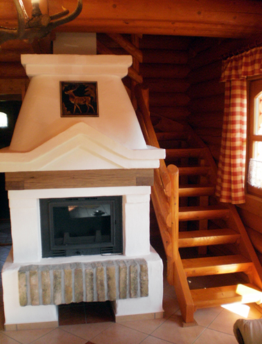 Kétszintes, erdélyi fenyőből készült rönkházunkban 10 fő elhelyezésére van lehetőség. A földszinten lévő nappali helyiség magában foglalja az étkezőt, a nappali sarkot és a főzőfülkét, valamint az egész ház fűtését ellátó kandallókályhát. A földszinten található még egy hálószoba 2 fő részére, fürdőszoba hidromasszázs zuhanykabinnal, valamint egy külön wc.